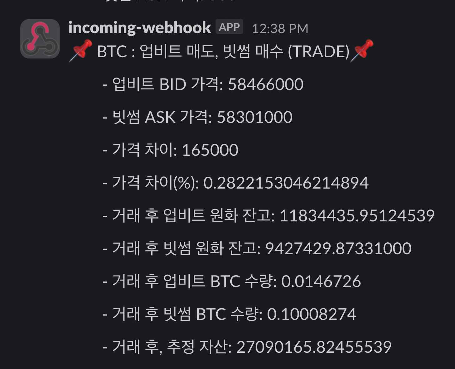 - 어떤 커뮤니티에서는 이런 차익거래 봇 예전부터 있었고, 기관들이 다해먹는데 개인 개발자들이 개인 피시나 똥 스펙 서버에서 어떻게 수익을 내냐는 사람들이 있다. 물론 틀린 논리도 아니고, 나 또한 이를 의심했었기 때문에 지금까지 개발을 미루어 왔었던 것 같다. 하지만 실제로 열심히 갈아넣고 개발해보고 나니까, 실제로, 수익이 나고 있는데용;;;